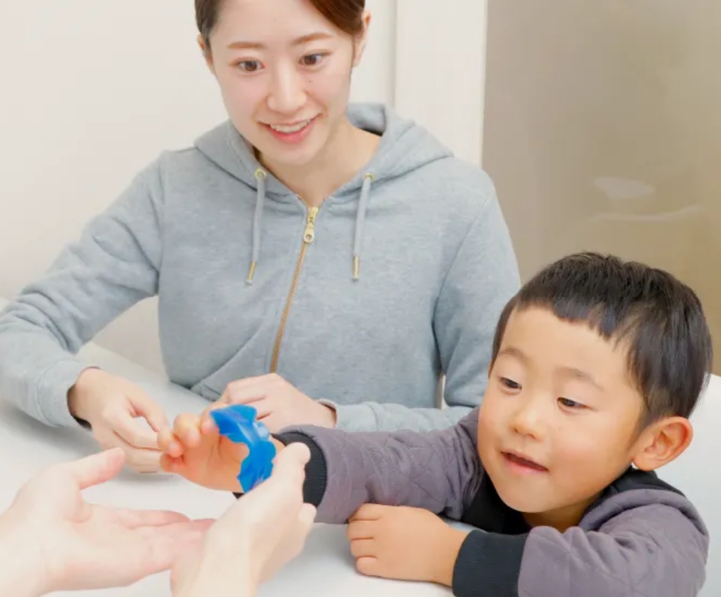 お子さま専用のマウスピース型矯正装置(プレオルソ)を使って、お口周りの筋肉をトレーニングし、歯並びが悪くなる原因を根本から改善。