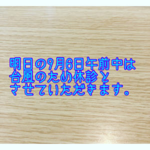 明日の9月6日午前中は台風のため、休診とさせていただきます。