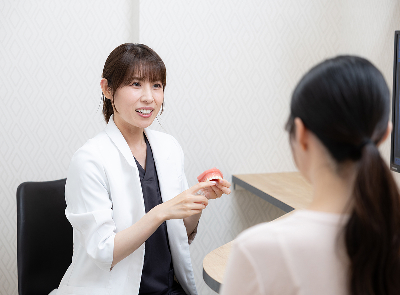 お話をうかがった後、現状に対して、現段階で考えられる治療法の説明、大まかな治療期間や費用などをお伝えします。