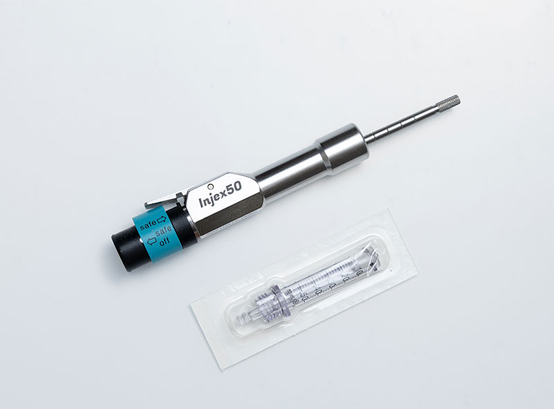 当院ではご希望があれば、針を刺さずに微細なジェット流で薬液を皮下注射する、針なしジェット注射システム「Injex50」も導入しています。