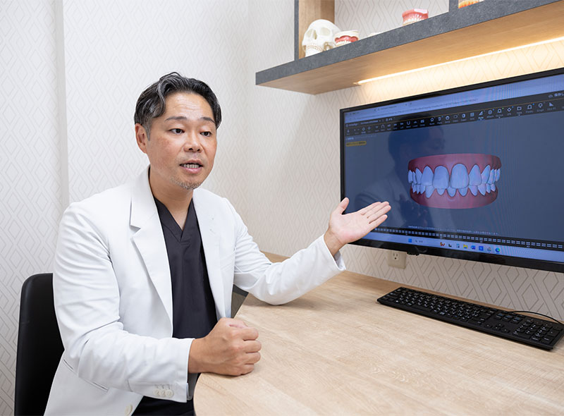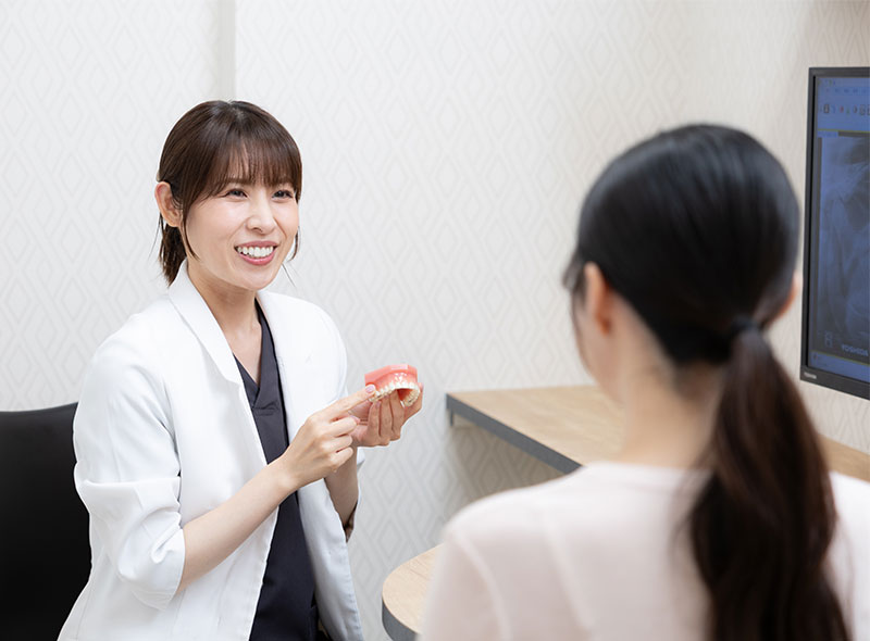 カウンセリングや検査の結果をもとに、現状と今後の見通しについて、わかりやすく画像を用いてご説明します。治療の選択肢が複数ある場合は、それぞれの治療方法のメリット・デメリット、費用面・期間についても誠実にご説明いたします。